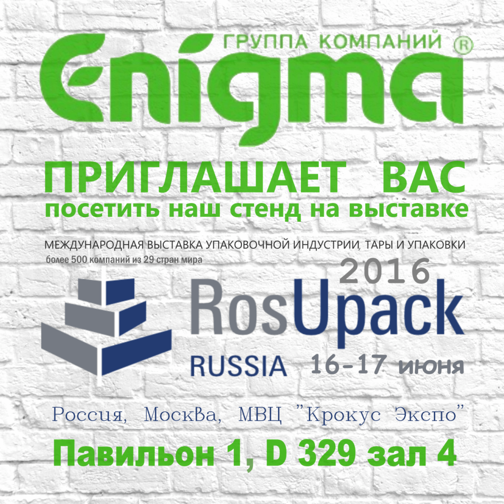 Мы приглашаем Вас посетить наш стенд на выставке RosUpack 2016, который Вы сможете найти в Павильоне 1, D 329 зал 4.