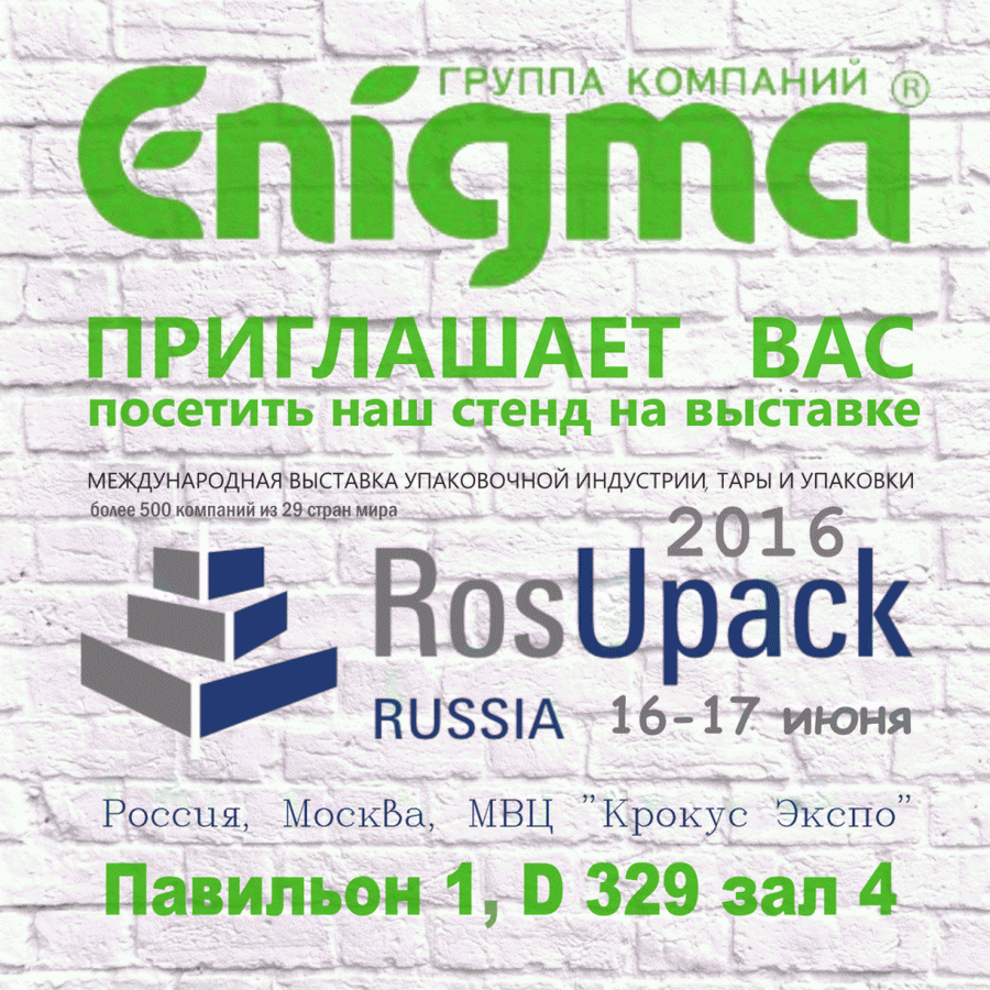 Мы приглашаем Вас посетить наш стенд на выставке RosUpack 2016, который Вы сможете найти в ...